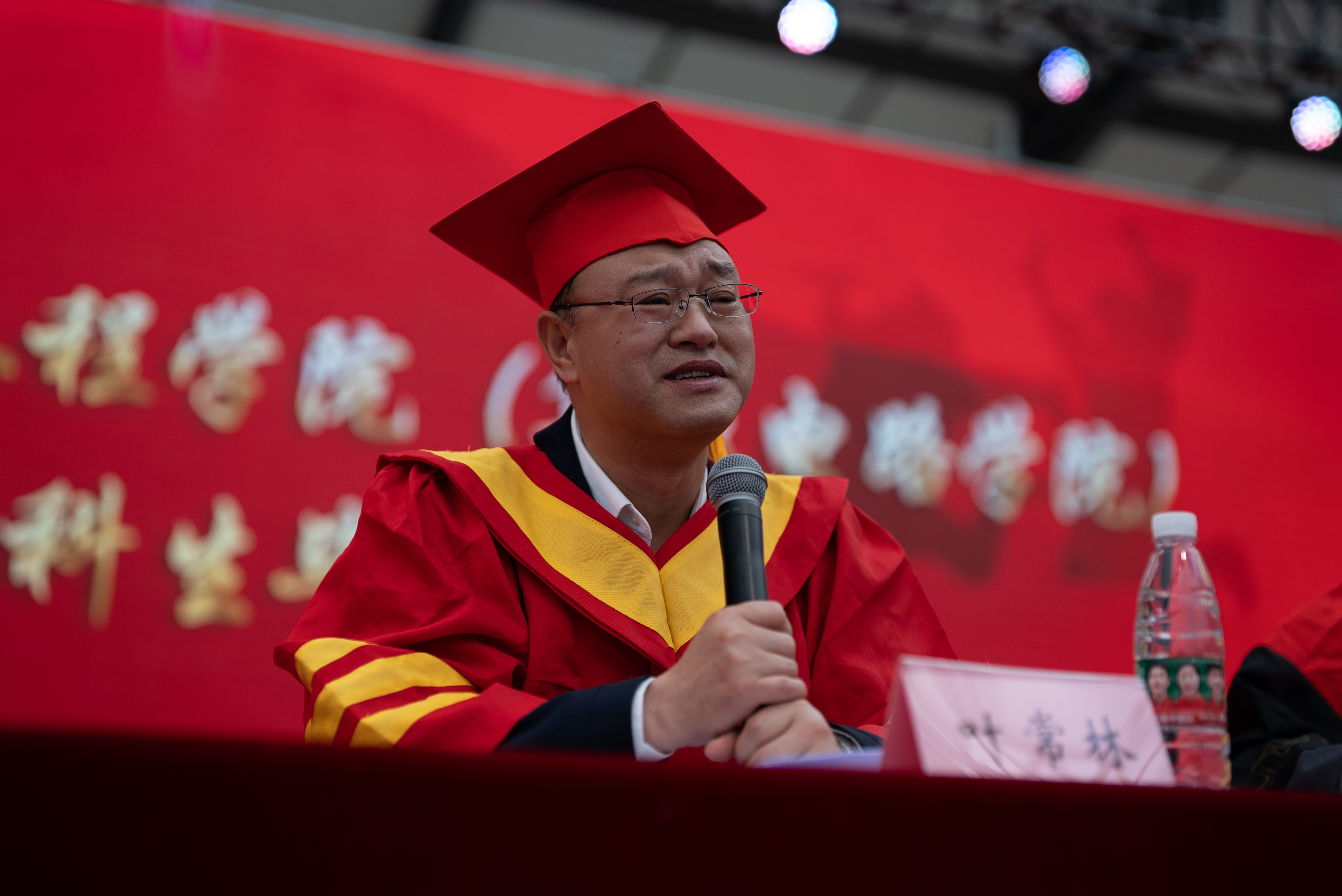 “我由衷地为大家感到高兴。首先,我谨代表学校向圆满完成学业的857名电气学子表示热烈的祝贺!向悉心培养和关心你们成长的老师们、家人们,致以诚挚的感谢!”叶常林在讲话中带领同学们回顾了在jav 经历的不平凡四年。从2019到2023,从自动化、电子信息工程两个专业入选国家一流本科专业建设点,再到疫情防控工作默默坚守与付出,叶常林说:“四年前,你们与学校庆祝相识;四年后,学校与你们纪念离别。你们以青春为笔,在这里书写一段锦绣华年。凡是过往,皆为序章;凡是未来,皆有可期,每一次告别都是为了更好的出发,每一次旅程都通向更广阔的未来。”