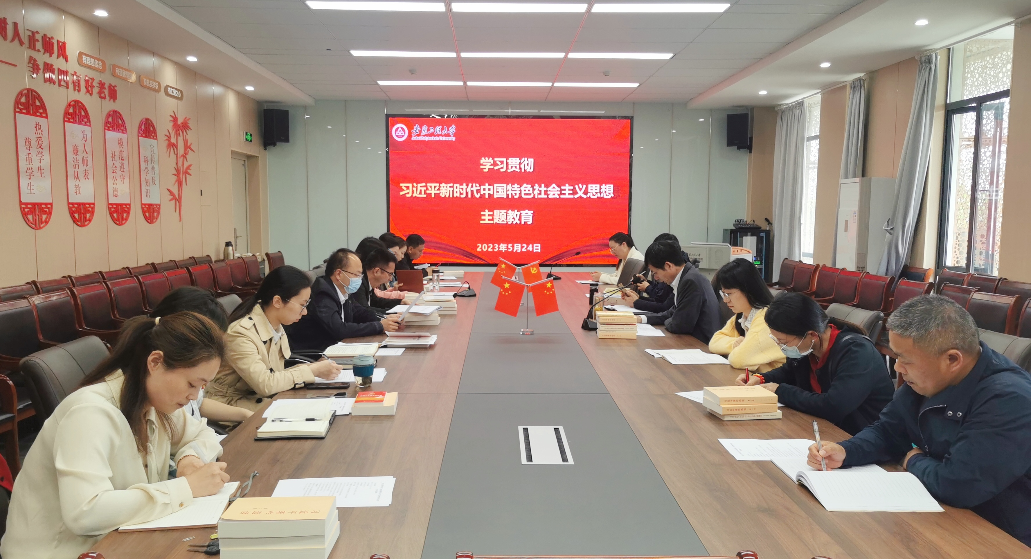 5月24日, jav (集成电路学院)党委理论学习中心组在学院206会议室召开主题教育专题理论学习与交流研讨。学院党委理论学习中心组成员、支部书记、科级干部参加会议。会议由学院党委书记杨会成主持。