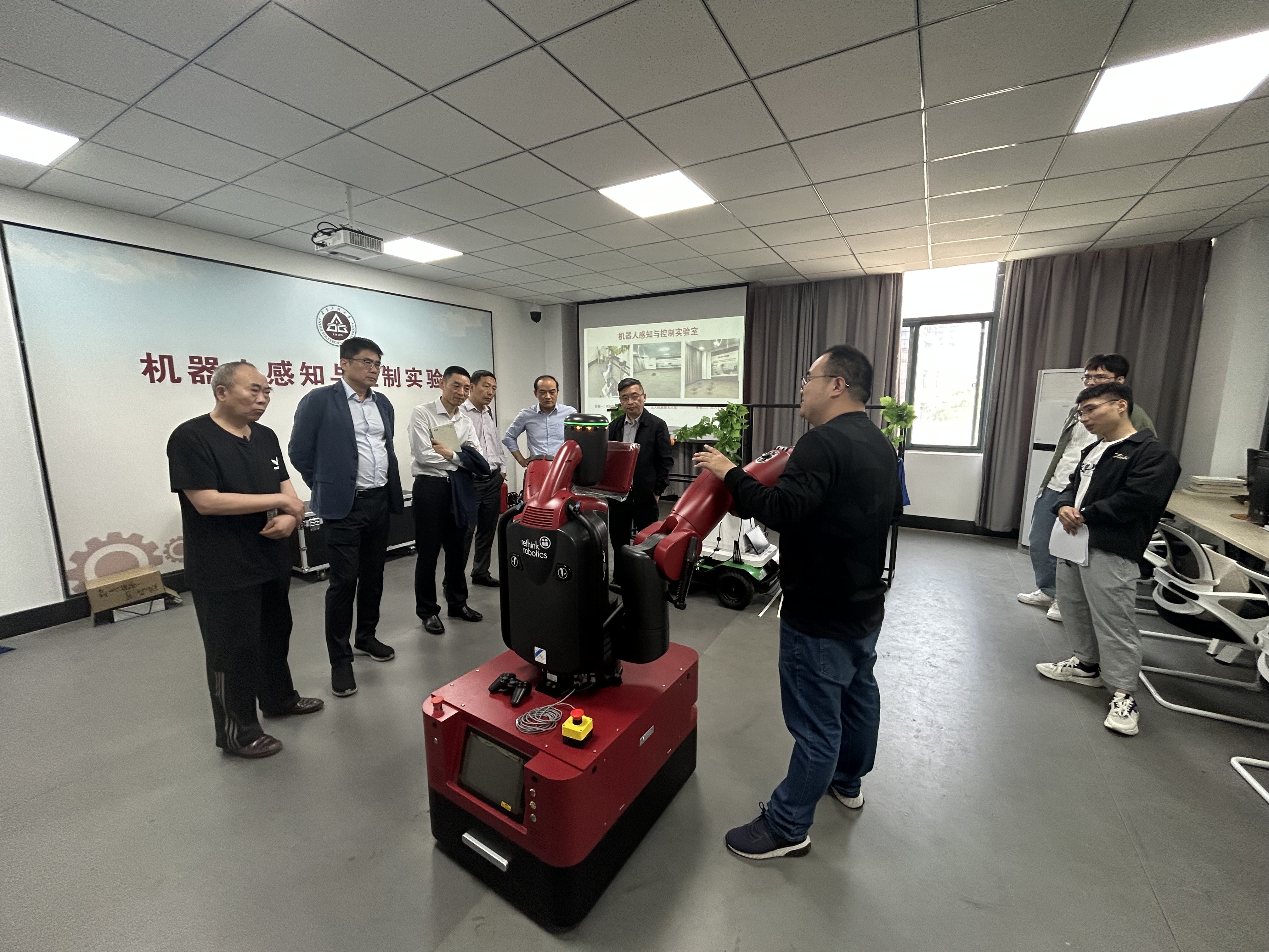 葛愿介绍了学院在深化校企融合、推进产学研合作、服务区域经济发展等方面的主要举措和相应成果。金国卫董事长介绍了金屹集团的产品布局与技术需求情况。随后,双方与会人员针对人才联合培养、学生实习就业、产学研合作等方面进行了深入探讨,达成初步共识与合作意向。座谈会前,金国卫一行参观了教育部重点实验室。