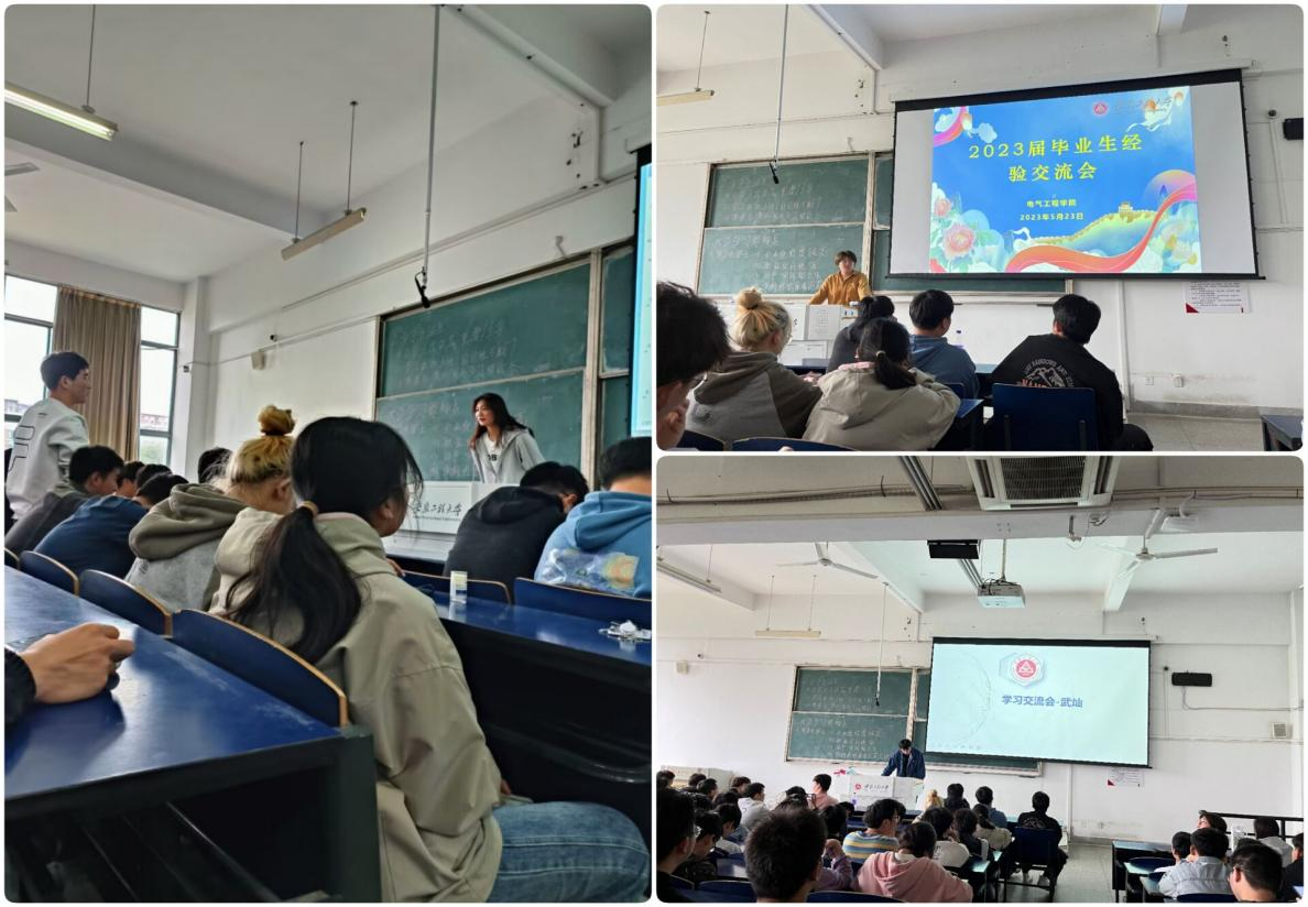 本次活动邀请了六位2023届毕业生优秀代表,面向2022级学生分享了自身考研、就业经验。首先,考入南京邮电大学的电子194张堃然,结合自己学生会主席、班级团支书等任职经历,强调要在大学生涯全方位的锻炼组织力、行动力、领导力,在学习的同时,提升自身综合素质和能力。通信192马敖、电科191伊明印分别从本专业各个科目的学习脉络、专业方面及就业领域展开交流。紧接着,考入山东大学的自动化194武灿,结合自己学习委员和在电协的磨炼,讲述了准备学科竞赛和考研的心路历程,鼓励学弟学妹们坚持初心,砥砺前行,终会守得云开见月明。考入江南大学的电气194曾雨萱则从评奖评优、人际关系、心态调整等方面向同学们阐述了学习的重要性和意义,并强调了参加数模比赛、学科竞赛等活动对提升专业技能和实践能力的帮助。最后,考入电网的电气192蒋子辰则从电网的报考条件、前期准备、时间规划、备考内容等方面做了详细介绍。