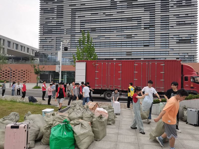 烈日当空,学生党员佩戴党员徽章亮身份,帮助22级学生搬运行李,为新搬入的学弟学妹指道引路,形成了一道靓丽的风景线。学弟学妹问学长学姐这么辛苦会发几个学时,他们骄傲的指向自己的党徽回答:“没有学时,我们是党员!”