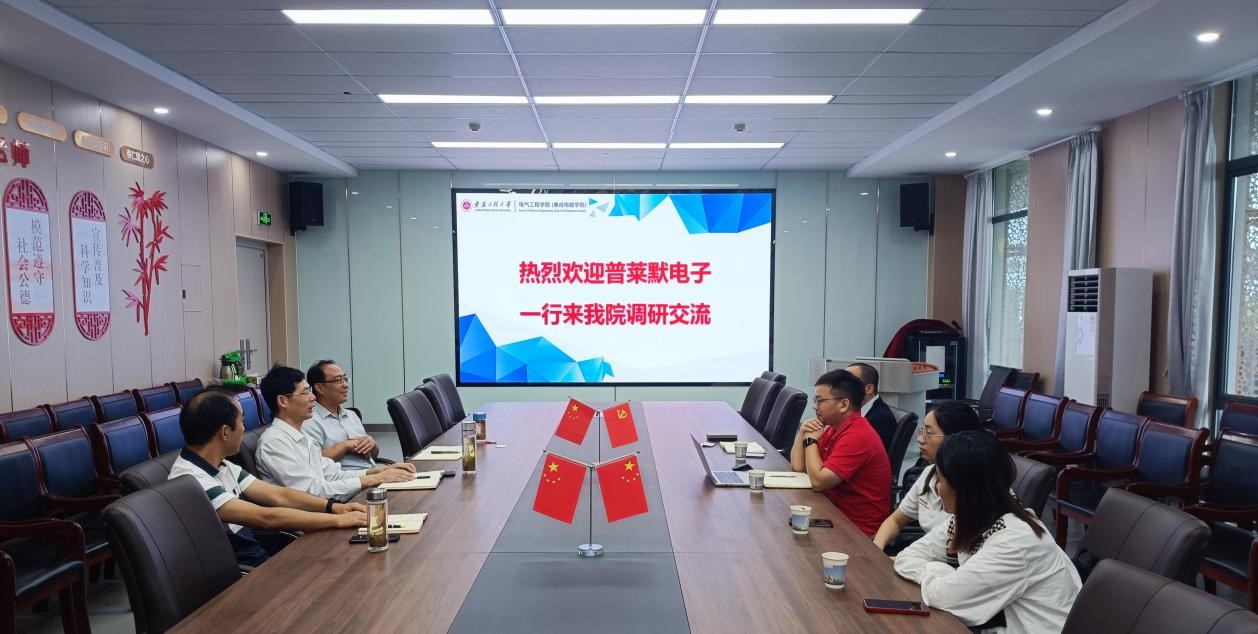 9月21日上午,普莱默电子(芜湖)有限公司厂长经理王炎一行4人来到 jav (集成电路学院)开展校企合作交流,学院党委书记杨会成、党委副书记迟传德、副院长刘世林与王炎一行就产学研合作、毕业生招聘就业、学生实习等进行了友好亲切的交流沟通。