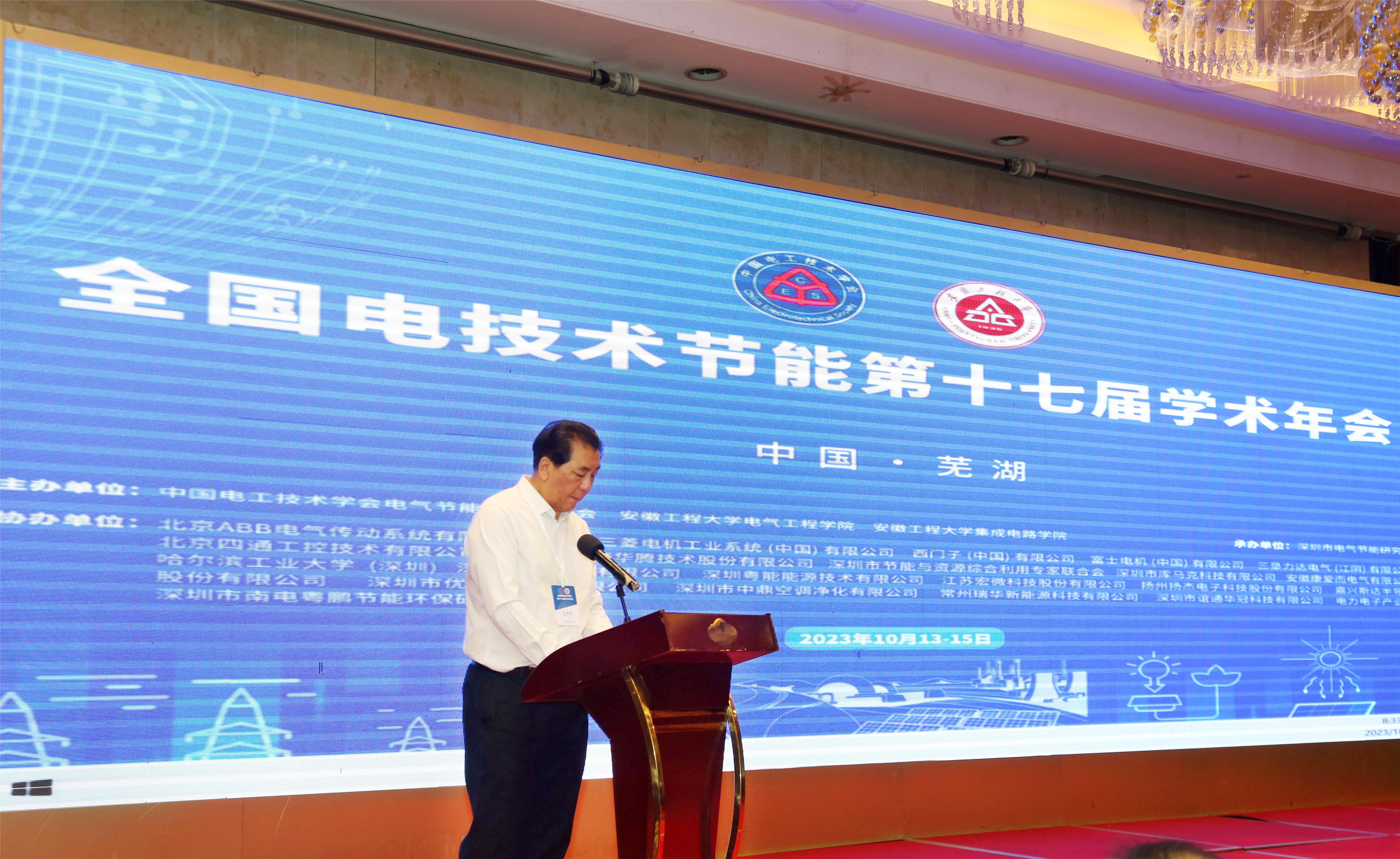 全国电技术节能第十七届学术年会暨中国电工技术学会电气节能专业委员会八届二次理事会于10月13日至15日在芜湖举行,会议由中国电工技术学会电气节能专业委员会(以下简称“专委会”)、 jav (集成电路学院)主办,深圳市电气节能研究会承办。专委会名誉主任、中国电工技术学会四十年荣誉称号获得者王占奎,清华大学电机系教授、俄罗斯外籍院士李永东,专委会副理事长兼秘书长孙长富,jav 副校长周虹屏, jav (集成电路学院)领导等人出席开幕式,开幕式由孙长富主持。来自清华大学、东南大学、南京航空航天大学、中国一汽研发总院等20多位高校和企业的专家学者以及我校研究生150余人与会。