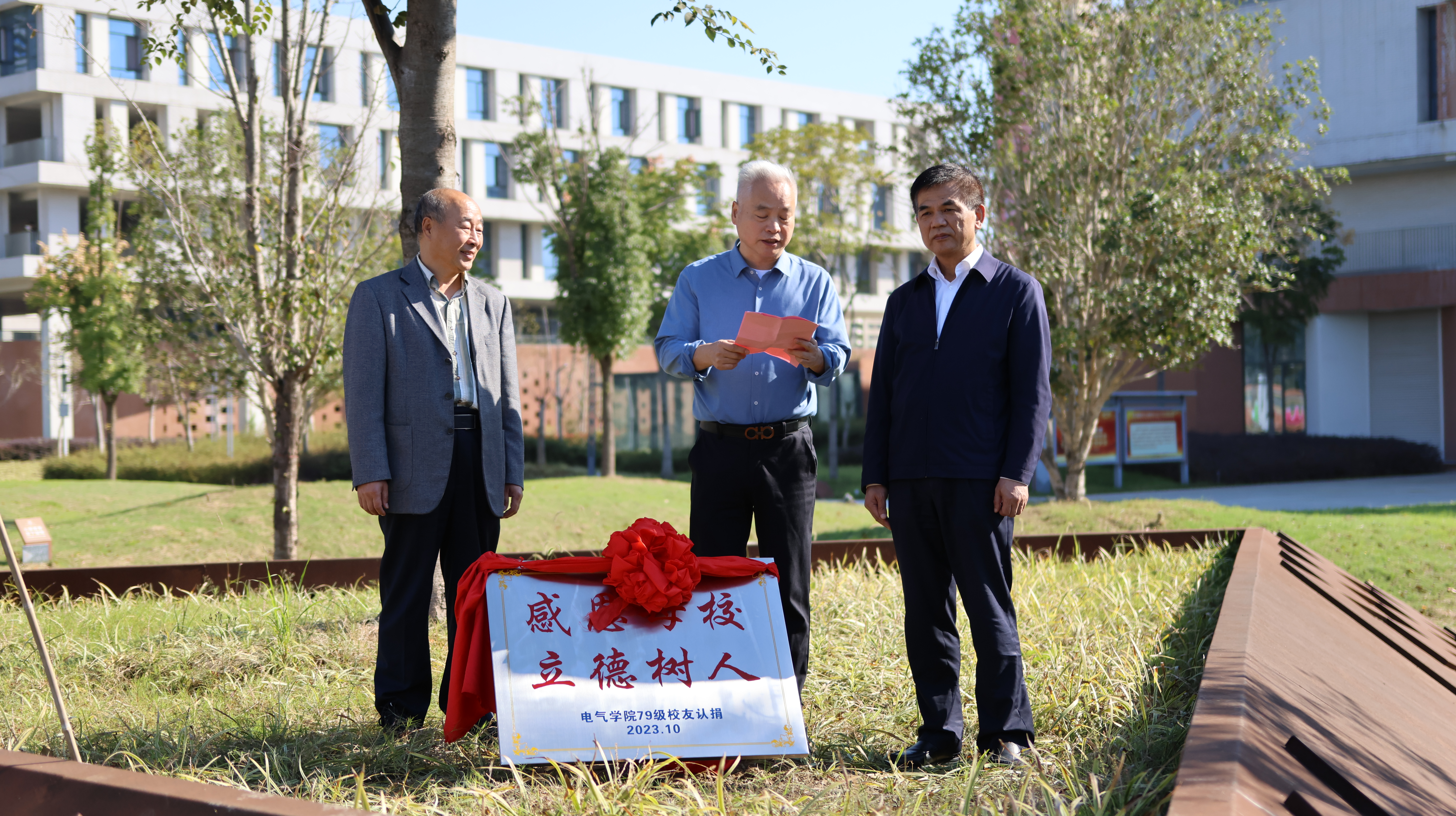 活动开始,举行认捐纪念树仪式。在全体校友的共同见证下,卢平与校友代表、北京理工大学博导张承宁教授共同为认捐纪念树揭牌,共同祝愿全体校友根植母校,枝繁叶茂,与母校一起不断进步成长。