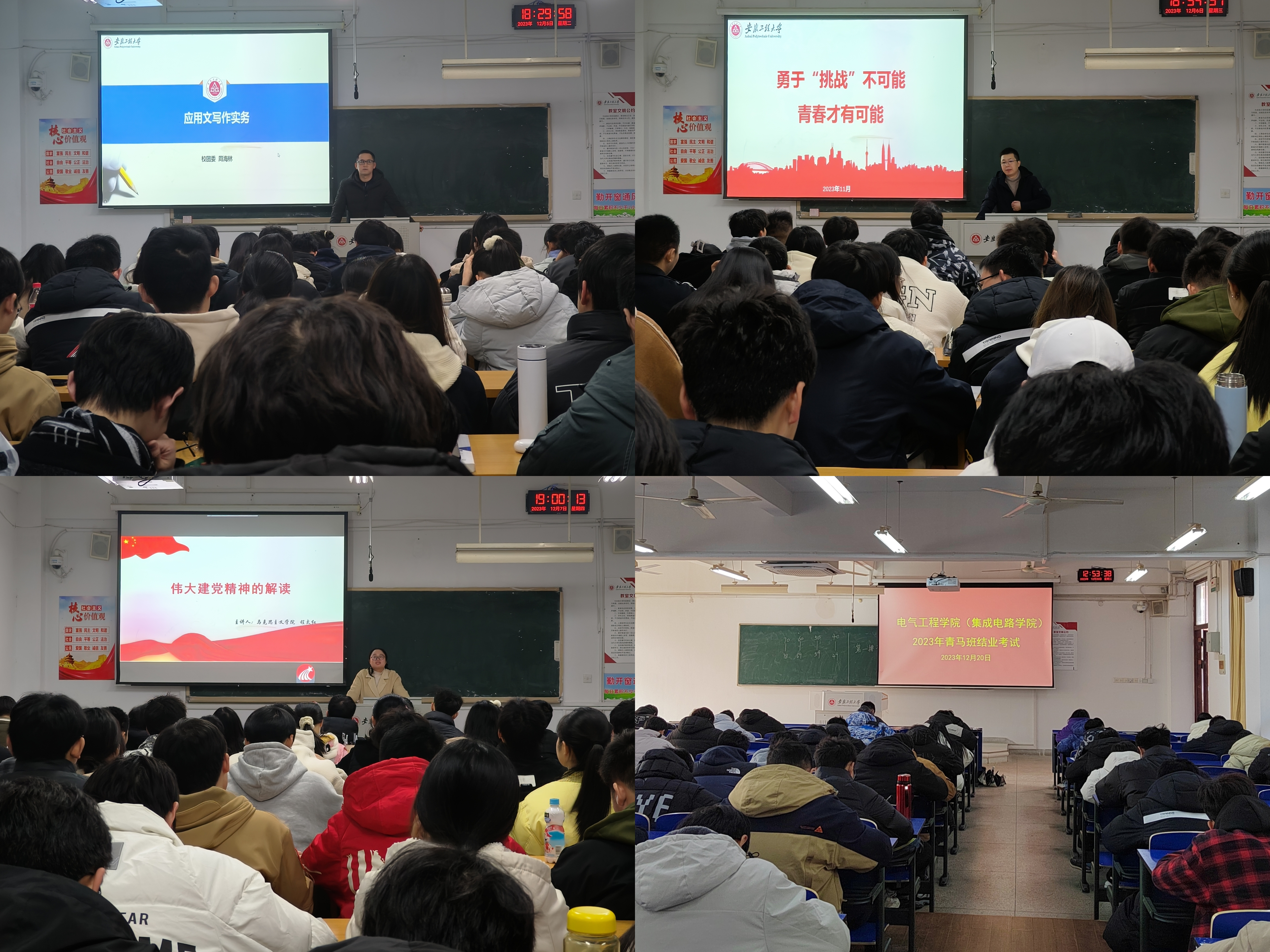 本期青马班在理论学习方面,贴合学生工作实际,校团委副书记周海林以“如何做好班团新闻宣传工作”为主题,为学员阐述了新闻宣传的重要性和应用文写作的技巧;学生处副处长兼心理健康中心副主任杜松涛为学员普及心理健康知识,指导学员如何及时发现同学和室友可能出现的心理异常,并给出了应对方法;学院党委副书记迟传德讲述了怎样做好一名学生干部,当好先锋,做好表率,努力成为理想信念坚定的青年马克思主义者;校党委组织部组织科科长黎新宏为学员解读了青年筑梦红色之旅、互联网+等赛事,鼓励学员勇于“挑战”不可能,青春才有可能;马克思主义学院程太红老师为学员解读了伟大建党精神,并阐释其当代价值,引导学员自觉运用理论指导实践。
