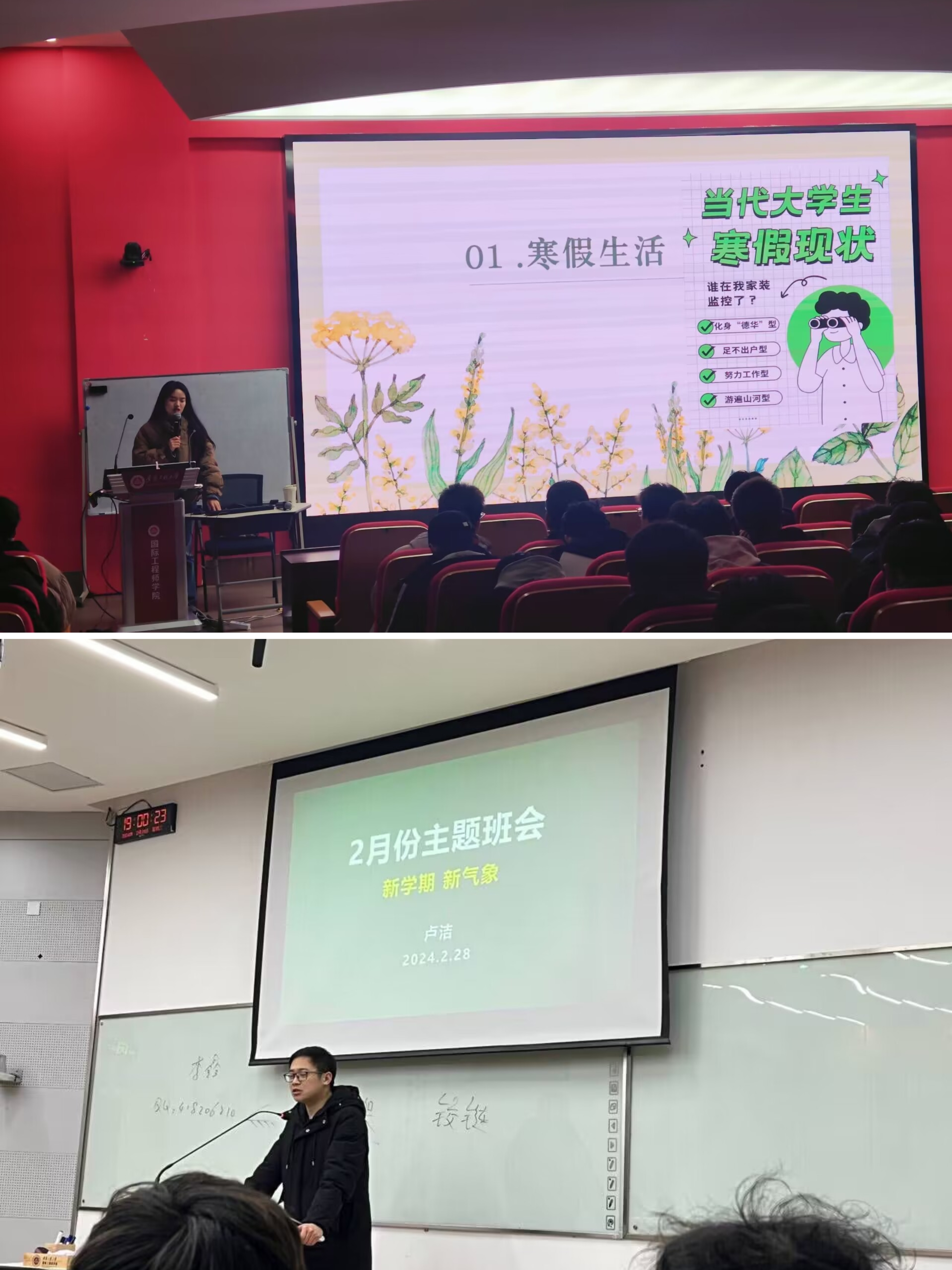 开展“开学第一课”,关注学生动态。为更加全面掌握学生思想动态,结合“开学第一课”,各专业在开学初期召开了主题班会。班会上,学生们分享了寒假经历、学习心得及新学期个人规划,辅导员就心理调适、职业规划、校园安全等做了讲解,帮助学生明确方向,增强信心。