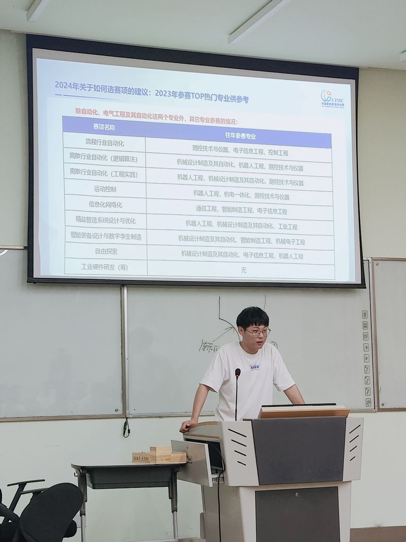 其次,汪夏磊详细阐述了比赛的流程和往年优秀获奖作品,针对我校近年的竞赛成绩及优势展开分析。他通过生动的案例和具体的数据,让同学们对比赛有了更加直观的认识。同时,他还特别强调了今年比赛规则和赛题的改动,提醒大家要密切关注比赛动态,做好充分准备。
