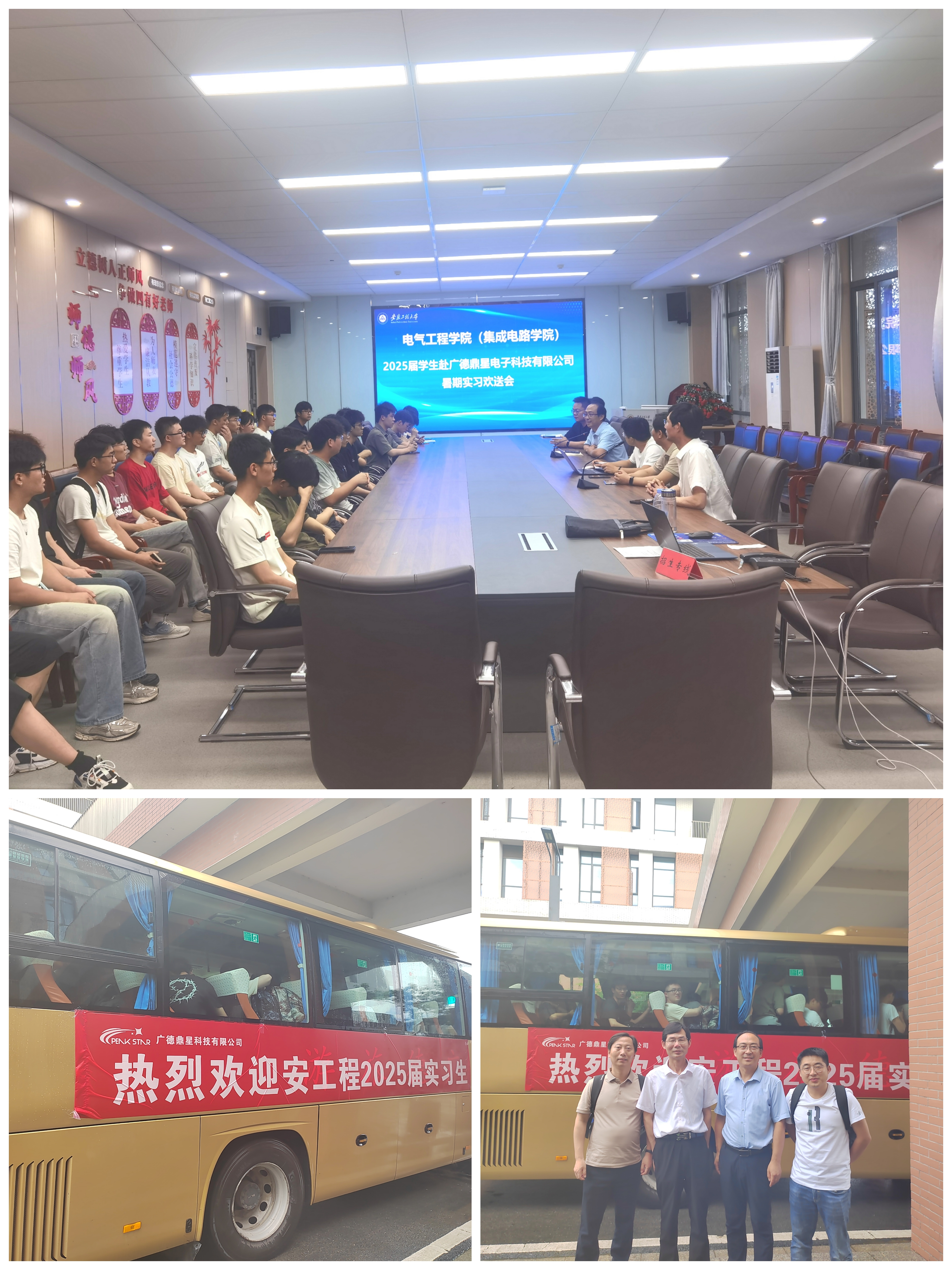 首先,杨会成对广德鼎星电子科技有限公司一行人的到来表示衷心的感谢,也对即将踏上企业实习旅程的同学们表达了深切的期望和祝福。他指出,企业实习是大学生活中非常重要的一环,是学生们将所学知识运用到实际工作中、积累实践经验的重要途径。广德鼎星电子科技有限公司作为一家专注于集成电路领域的企业,为同学们提供了一个广阔的实习平台,希望大家能够珍惜这次机会,认真学习、努力工作,为企业的发展贡献自己的力量,也为个人综合素质的提升奠定基础。