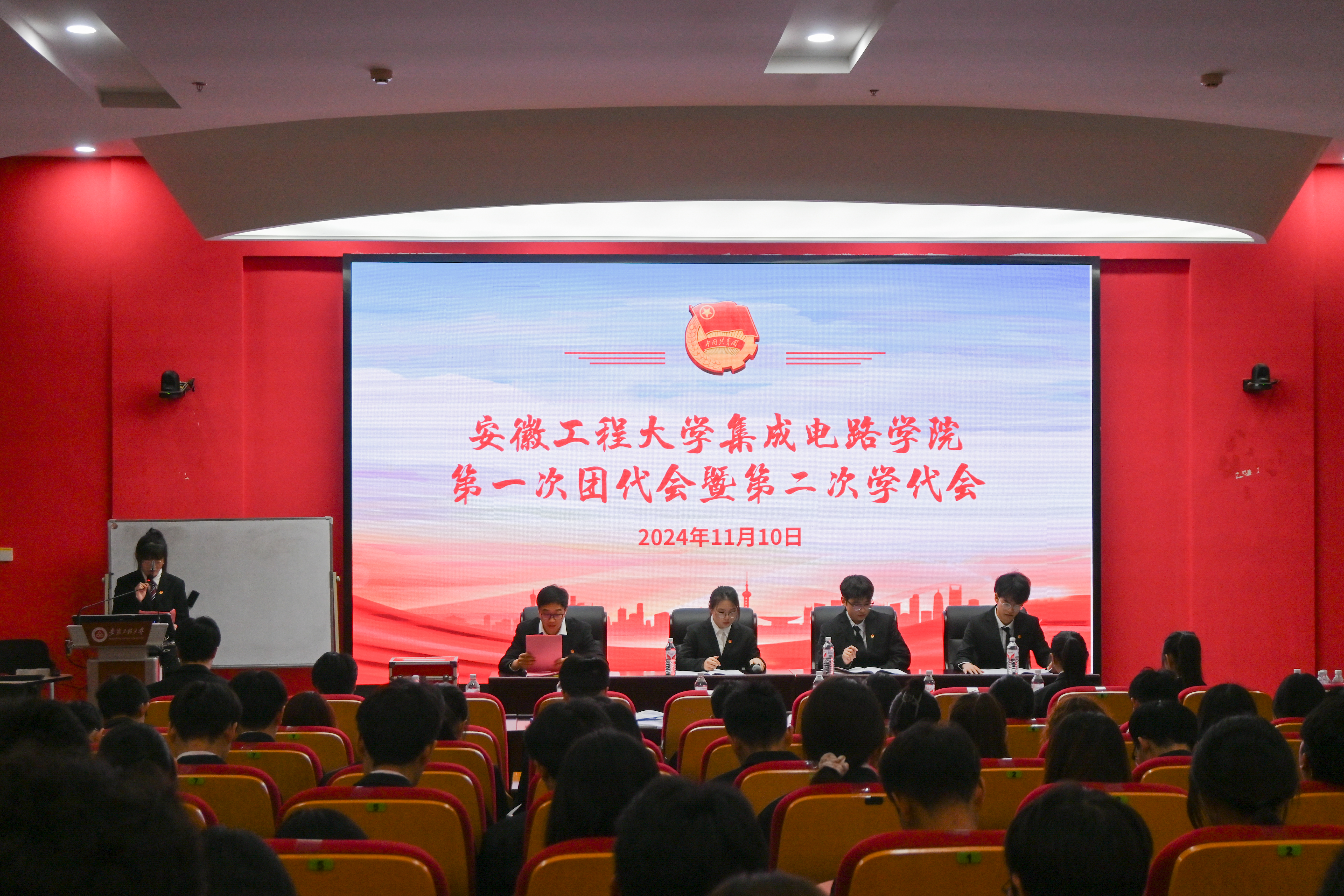 11月10日上午,在庄严的国歌声中,共青团 jav 第三次代表大会暨第七次学生代表大会、集成电路学院第一次代表大会暨第二次学生代表大会在国际工程师学院校区赤铸报告厅隆重召开。校团委书记李恒奎,校学生会主席杨扬,学院党委书记杨会成,党委副书记迟传德,辅导员代表以及两院全体大会代表参加开幕式。