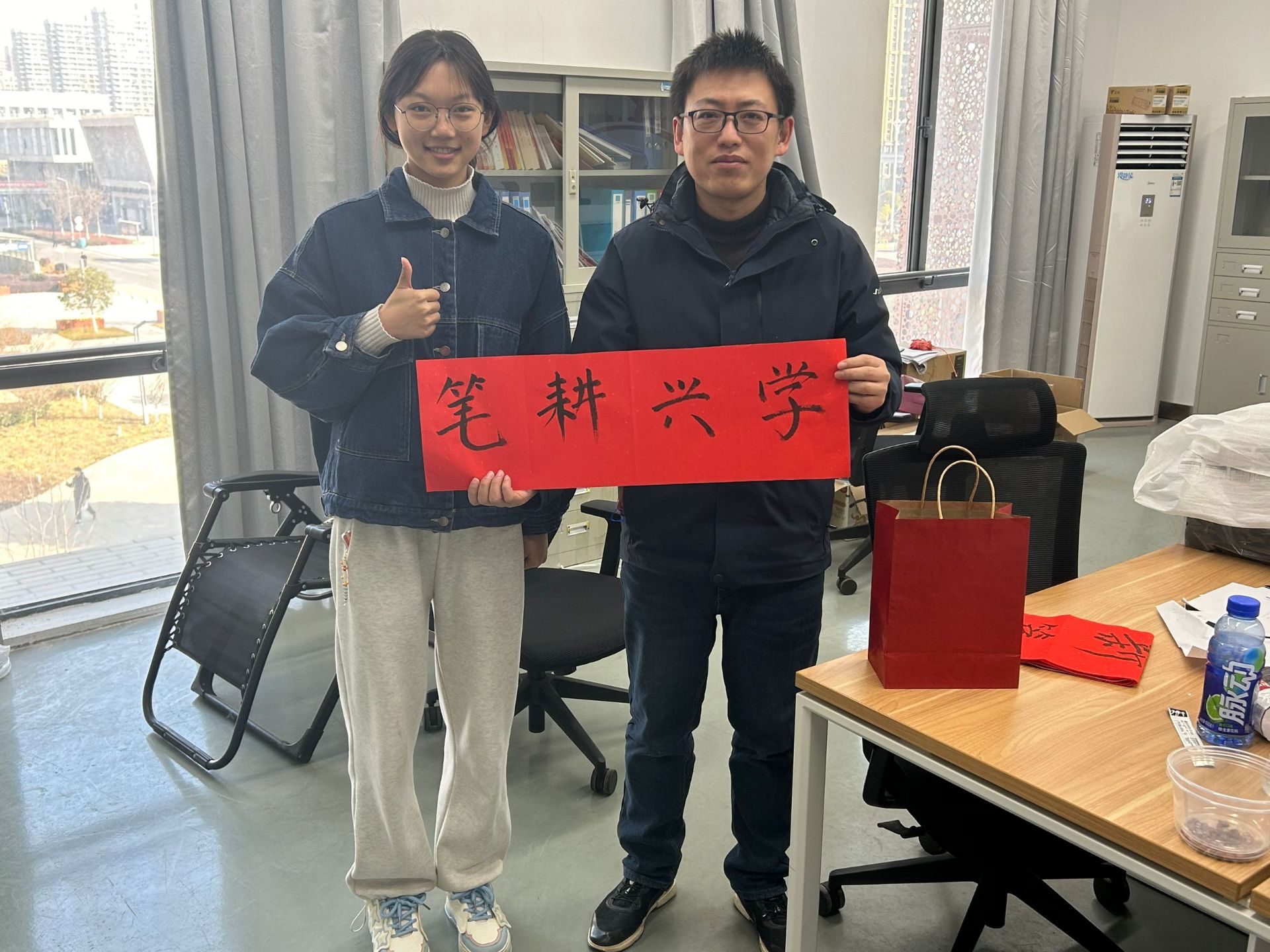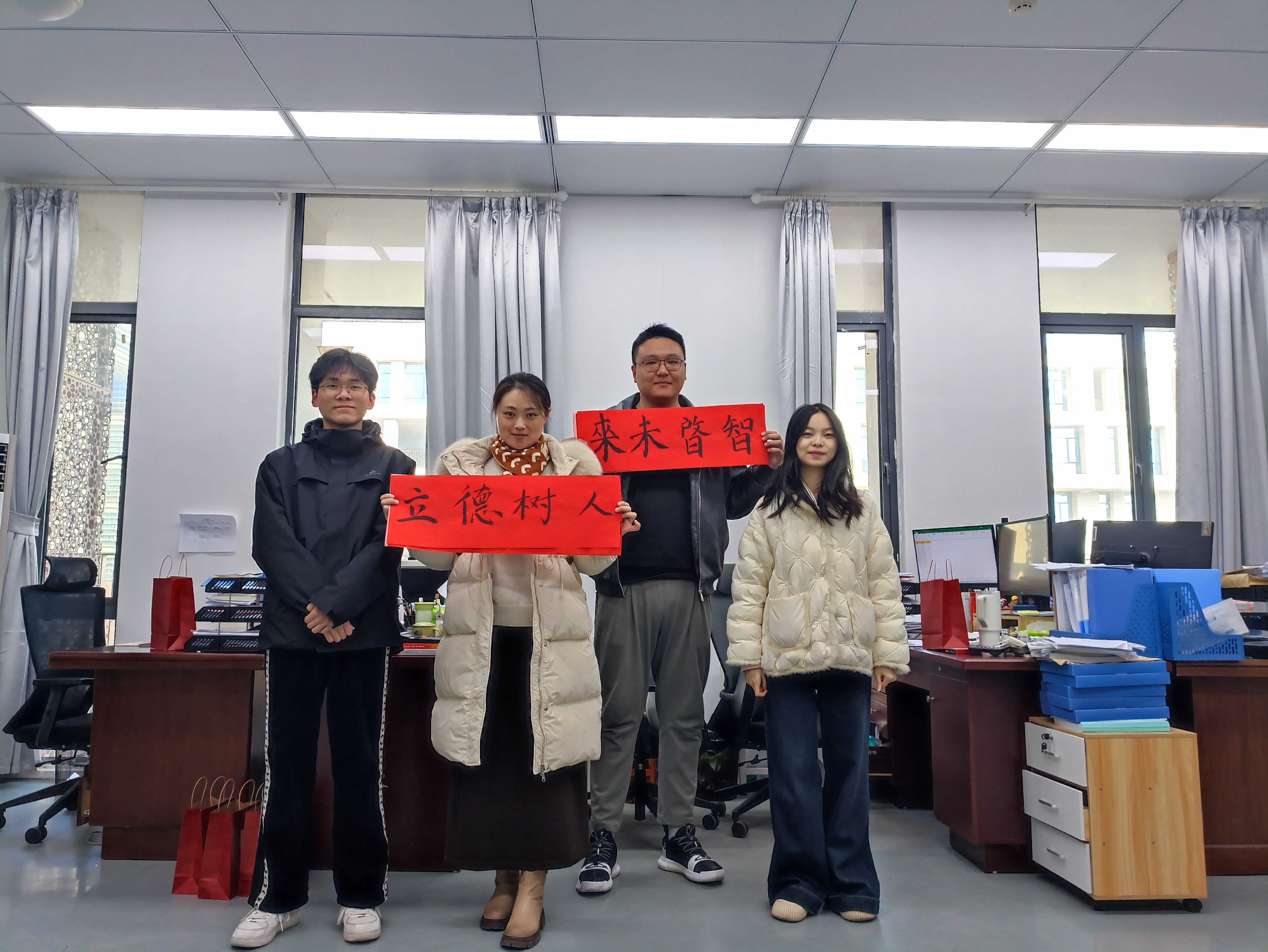 学院“一站式”学生社区“芯”青年之家以“庆校庆·迎元旦为主题”开展了“我为学院写春联”活动,吸引了大批青年学生参与,纷纷为学校、老师送出祝福。活动现场墨香四溢,红纸翻飞。同学们热情高涨,一笔一画地书写着对学院的美好祝愿。春联内容既有传统的吉祥话语,也有结合学院特色和专业特点的创意佳句,每一副都蕴含着同学们对学院的深情厚谊。同学们亲手将春联、剪纸和贺卡送到了学院各位老师的手中。老师们脸上洋溢着幸福的笑容,纷纷表示感受到了同学们的用心和温暖。