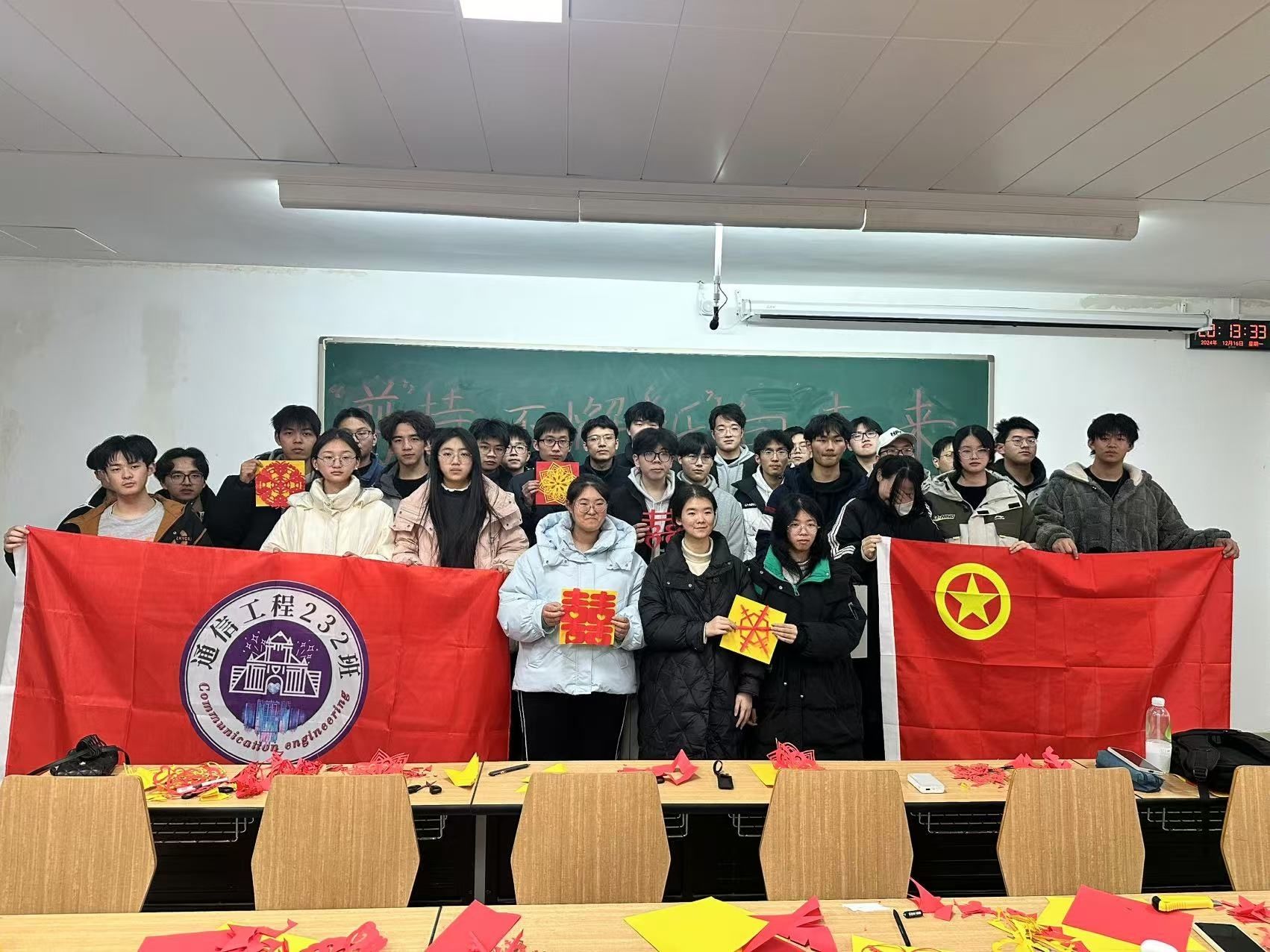 通信232胡雅琴表示:“这次活动意义非凡,不仅让我们有机会亲手为老师们送上新年的祝福,也拉近了彼此之间的距离。还让大家在一起喜气洋洋地写对联、剪纸时感受到了浓浓的节日氛围。”