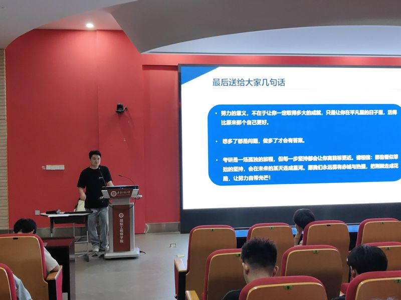 互动交流结束后,王世芳老师发言首先对21级成功上岸的同学们表示了热烈的祝贺和衷心的感谢21级的同学们用实际行动为学弟学妹们树立了榜样,也希望22级同学从学长学姐们的经验中汲取到了很多有用的信息,能够将这些经验转化为实际行动,制定科学合理的备考计划,一步一个脚印地朝着目标前进。鼓励同学们要相互支持、相互鼓励,形成一个积极向上的备考氛围在备考过程中,遇到困难不要害怕,要勇敢地向老师、同学请教,大家携手共进,一定能够克服重重困难,在明年取得更好的成绩。