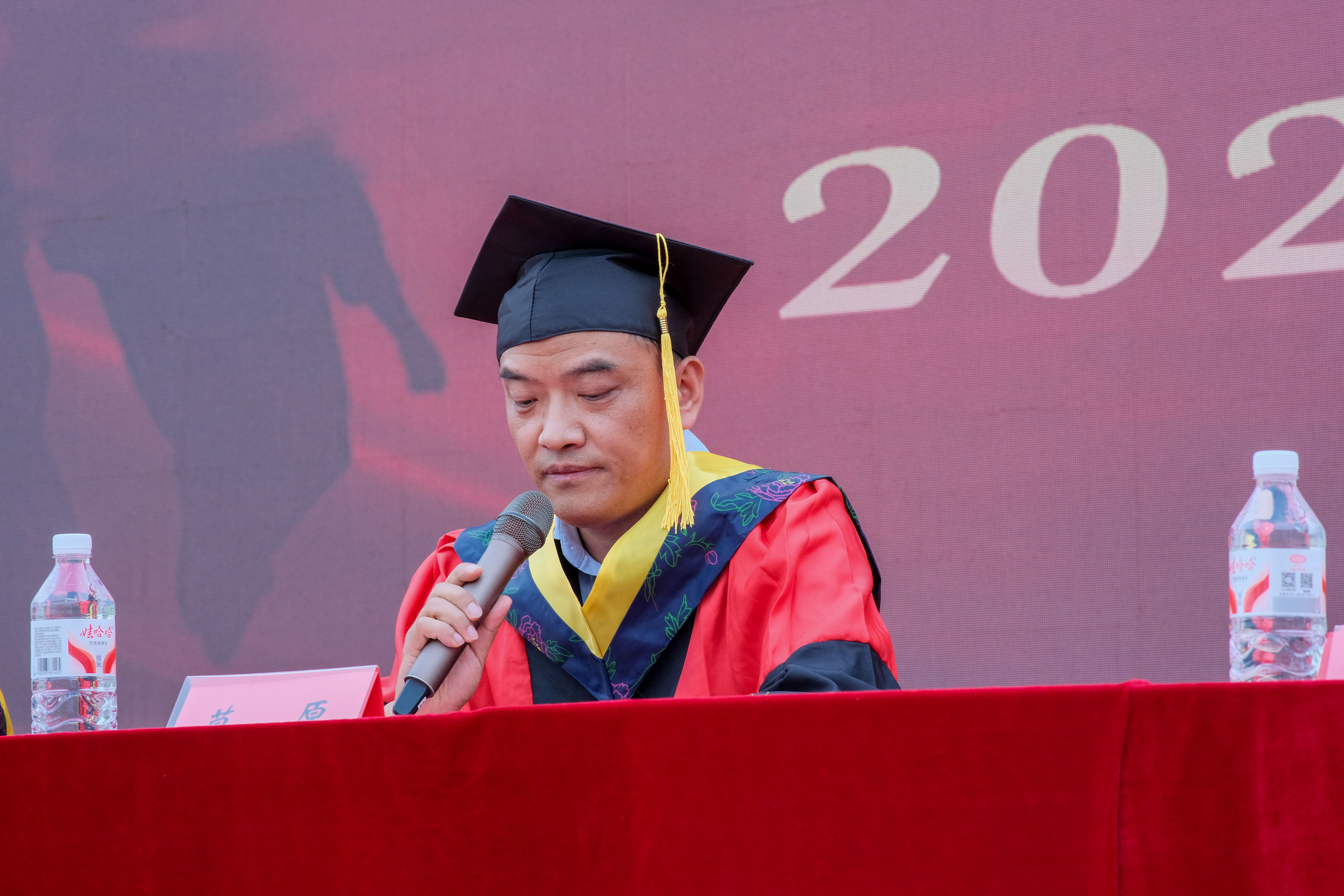 毕业典礼结束后,离退休教职工代表以书画才艺寄语毕业生,希望他们将“雨耕勤作 赤铸精工”的校训精神融入血脉,祝福毕业生前程似锦、未来可期。
