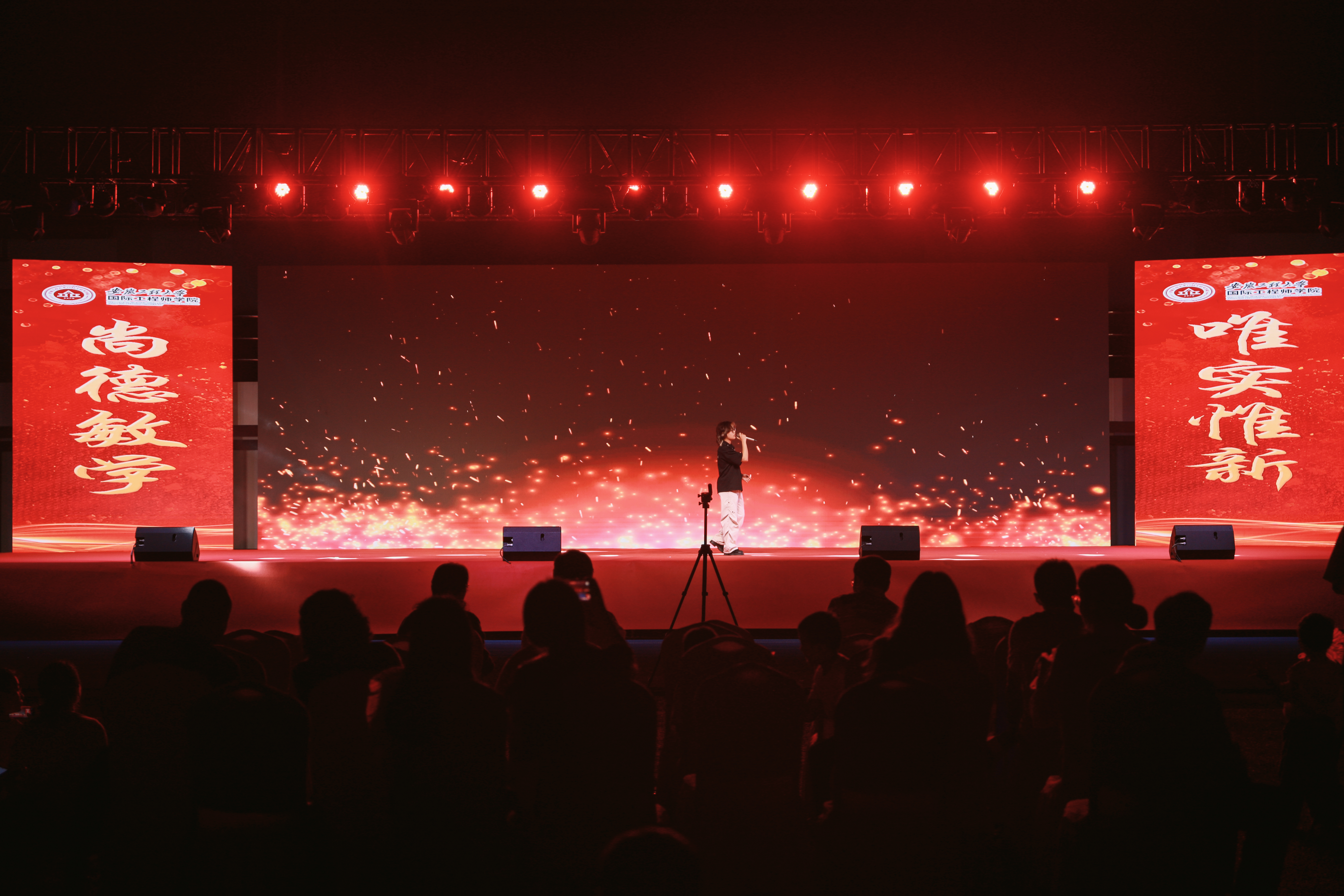 晚会现场热闹非凡,青春的旋律飘荡在校园的每一个角落。随着开场节目舞蹈《new Vibe》的活力登场,青春的激情瞬间点燃全场,舞者们轻盈灵动的舞步、充满感染力的节奏,将年轻人的青春活力展现得淋漓尽致,为晚会拉开华丽的帷幕。表演唱《少年中国说》气势磅礴,熟悉的旋律回荡在校园的夜空,“少年强则国强”的呐喊声声入耳,激发了在场师生的爱国热情,也让毕业学子们在迈向新征程之际,更加坚定了肩负时代使命的决心。