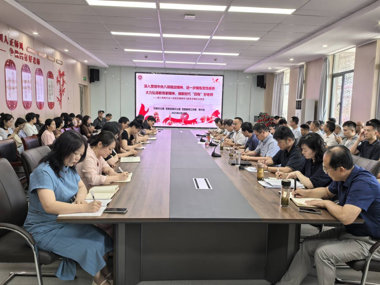 张春领学了《高校系统违反中央八项规定精神典型案例》《关于开展违规吃喝问题等五个专项整治工作的通知》和《师德师风警示案例选编》。强调要加强政治引领,自觉增强学习教育的责任感紧迫感;要深化思想认识,筑牢遵规守纪的思想根基,确保作风建设抓出长效,推动党的建设走深走实;全体教师要积极弘扬教育家精神,做新时代“四有”好老师,紧扣立德树人根本任务,践行教育事业的使命,培养新时代栋梁之材。