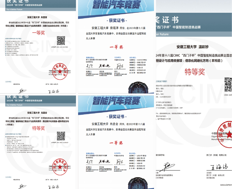 精选“四个专业赛道”。党支部锚定“新工科”人才培养目标,将学科竞赛与专业学习相结合,聚焦自动化领域的核心赛事,精选“西门子杯”中国智能制造挑战赛、全国大学生电子设计竞赛等四个赛道,积极探索以党建为引领、以学科竞赛为载体的实践育人模式。党支部成员通过“老带新+自循环”自成长方式组建学科竞赛党小组,搭建总结交流竞赛经验平台,提升备赛、竞赛能力。通过以赛促建,以赛促学,拓宽学生党员专业视野,激发学生党员竞赛内在驱动力,提高学生党员创新实践能力。竞赛育人结硕果,支部党员作为主力队员参加2023年和2024年“西门子杯”中国智能制造挑战赛决赛,助力学校连续两年获得全国总冠军。近三年,支部党员获“西门子杯”全国特等奖2项,一等奖近10项,获省级以上学科竞赛奖项75项,校级以上奖项超400项,党员发表多篇论文及国家发明专利。2024年,支部党员温彩妙获“西门子杯”中国智能制造挑战赛全国特等奖及“最佳女性工程师”称号。
