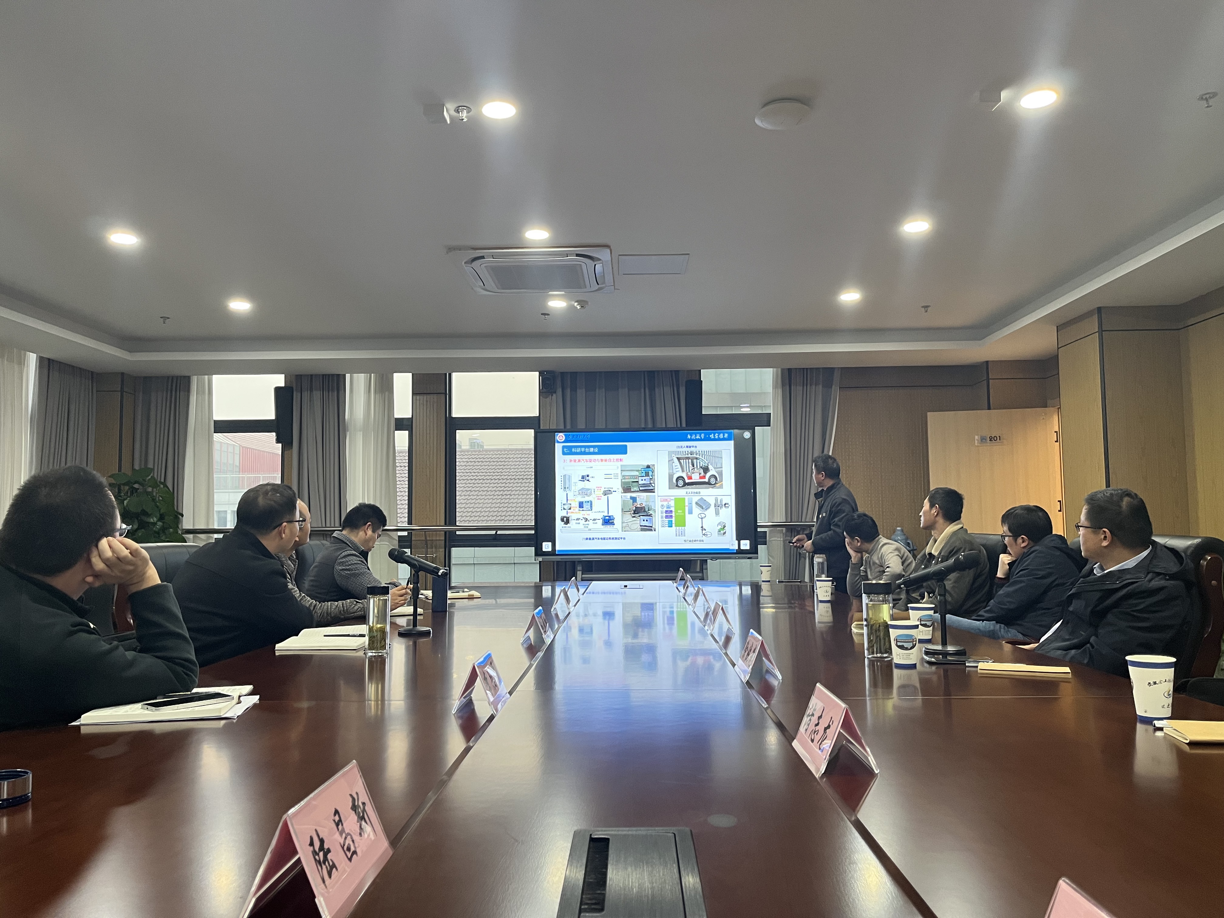 在含山经济开发区创新创业服务中心,调研组系统了解了开发区的产业布局、创新生态与支持政策。随后,与开发区经济发展局、企业服务局、党群工作部等部门负责同志举行专题座谈。座谈会上,双方围绕党建引领下的校地合作、人才培养、技术攻关等议题展开深入讨论。重点就共建产业项目组的方案进行了细致磋商,针对项目组的研发方向聚焦、校企资源投入机制、科技成果转化路径等关键内容交换了意见,并达成了初步共识,为后续签订具体合作协议奠定了基础。